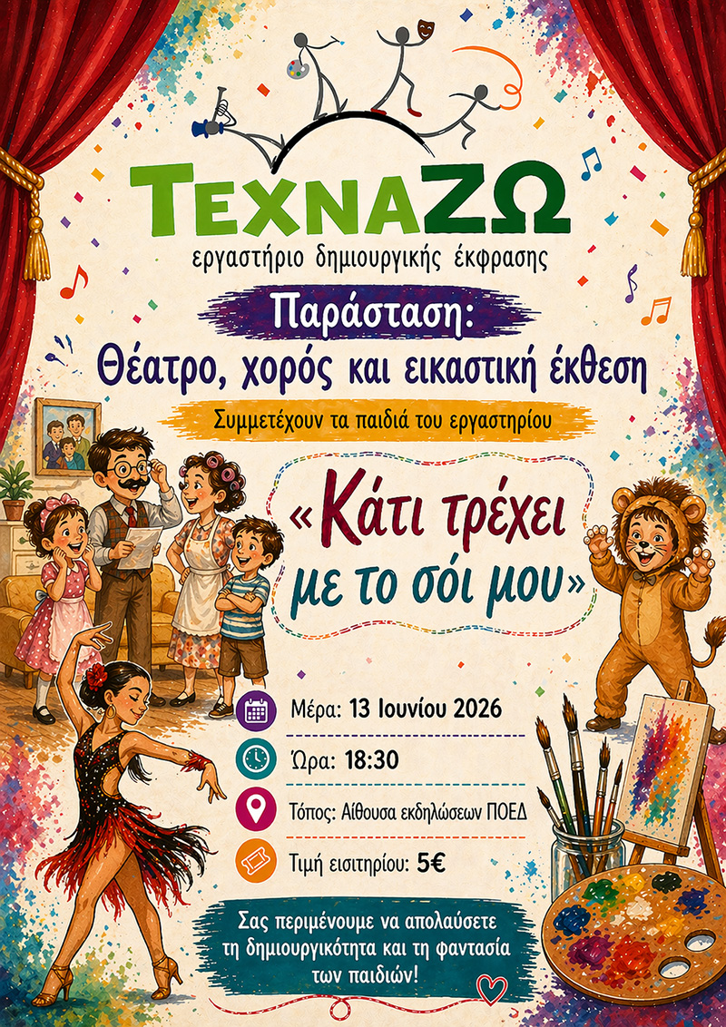 Στο εργαστήριο Δημιουργικής Έκφρασης «ΤεχνάΖω» σχεδιάζονται και υλοποιούνται Εκπαιδευτικά Προγράμματα για σχολεία